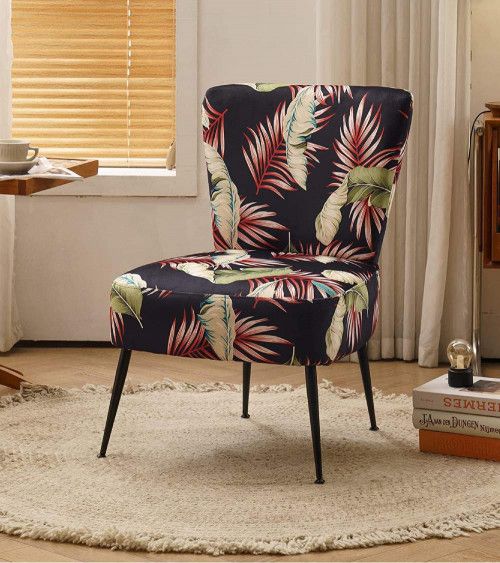 BUTACA MOMOA: Atrevida y elegante butaca de salón y descalzadora para dormitorio, recibidores, y otros rincones con encanto en tu hogar. Diseño de butaca clásica con destacado estampado tropical.