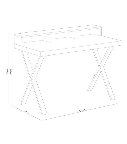 Mesa de escritorio con un gran cajón central para almacenaje. Escritorio de diseño industrial con patas negras en ángulo. Medida: 120x90,5x50 cm.