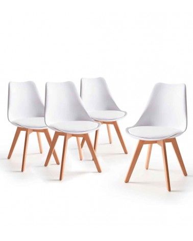 • CALIDAD. Silla en polipropileno de alta calidad, material ultra resistente y ligero resistente a la humedad. Cuenta con un cojín de polipiel extraíble cómodo y funcional que facilita su limpieza. Elegantes patas en madera de haya en color natural robustas y duraderas.